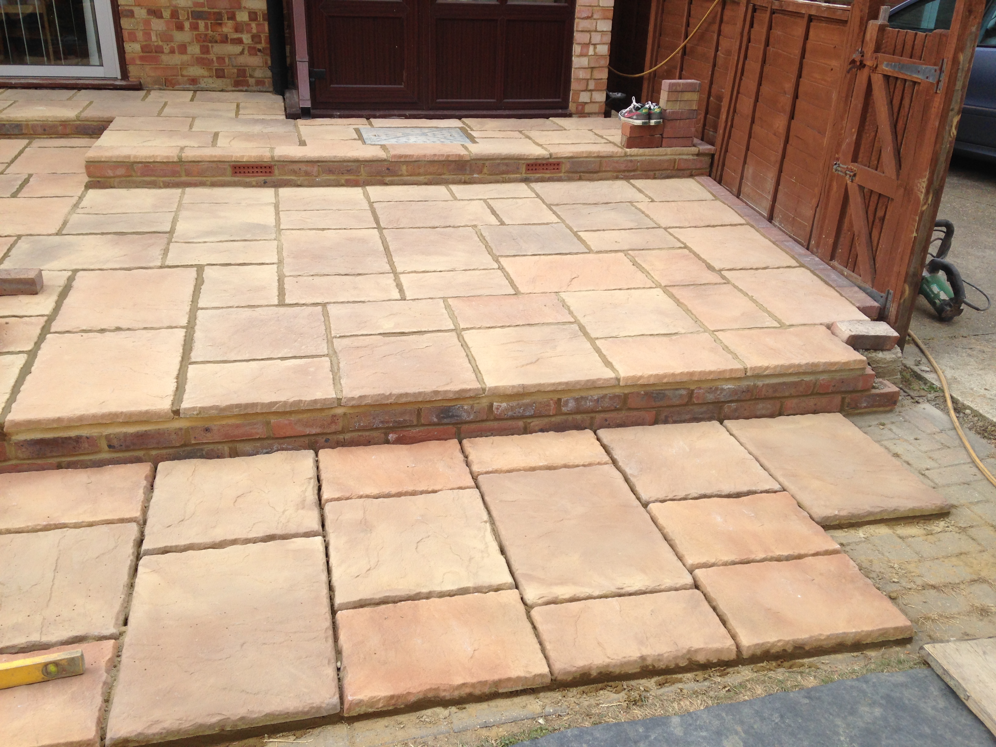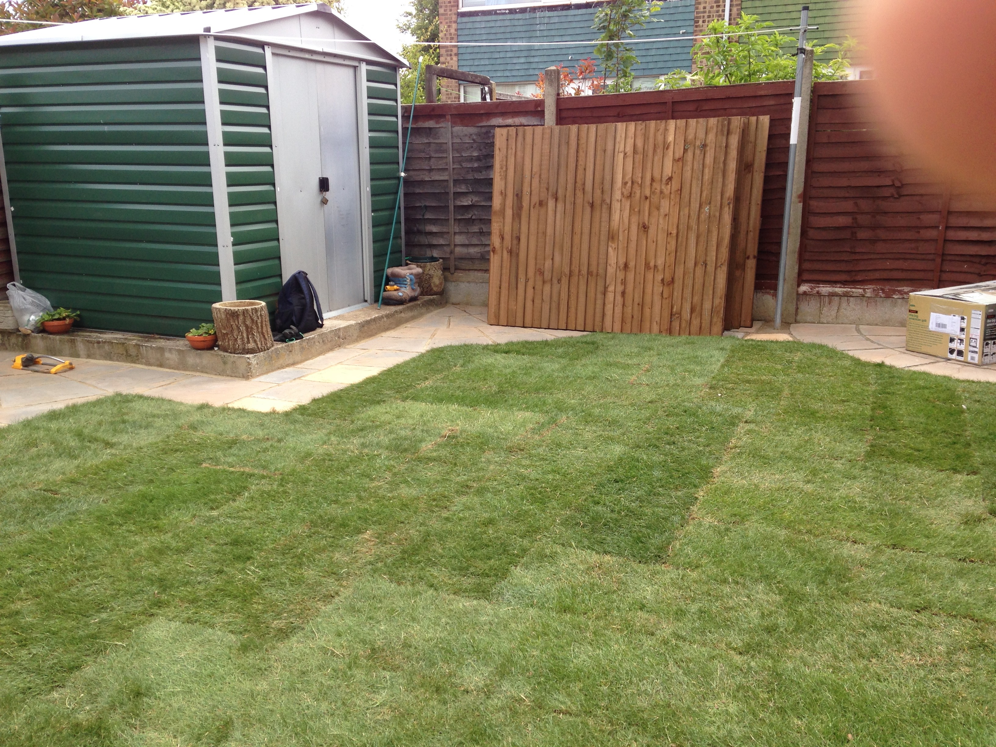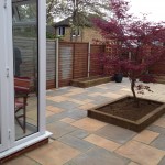 Patio, decked area and returf garden